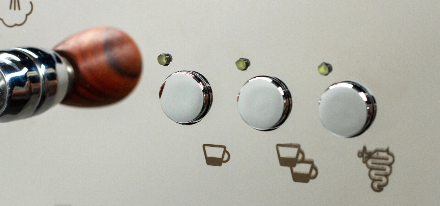 The two programmable buttons on the face of the machine allow you to pull single or double shots with one push, with a third button to brew manually. With the BZ13 DE Rosso, you have the best of both worlds. The machine can automatically pull shots, leaving you free to froth milk, cash out customers, or take a bite of breakfast. You can also brew manually to experiment with pulling shots or creating new brew recipes.