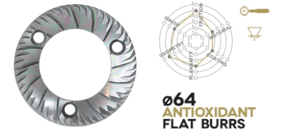 With 64mm flat burrs, the E5SD can seamlessly slice through every coffee bean leaving you with a consistent quality grind, perfect for espresso extraction. Flat burrs are known for not only creating a consistent grind but also for reducing heat transfer, which can cause thermal expansion and particle inconsistency. The E5SD dodges this bullet and features a unique pair of 64mm burrs that were treated with an antioxidant coating to protect against degradation and rust..