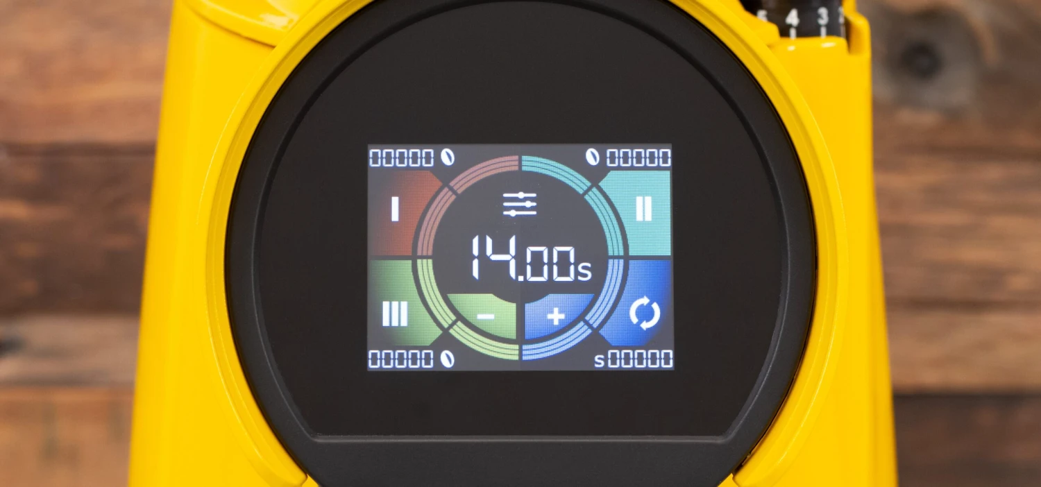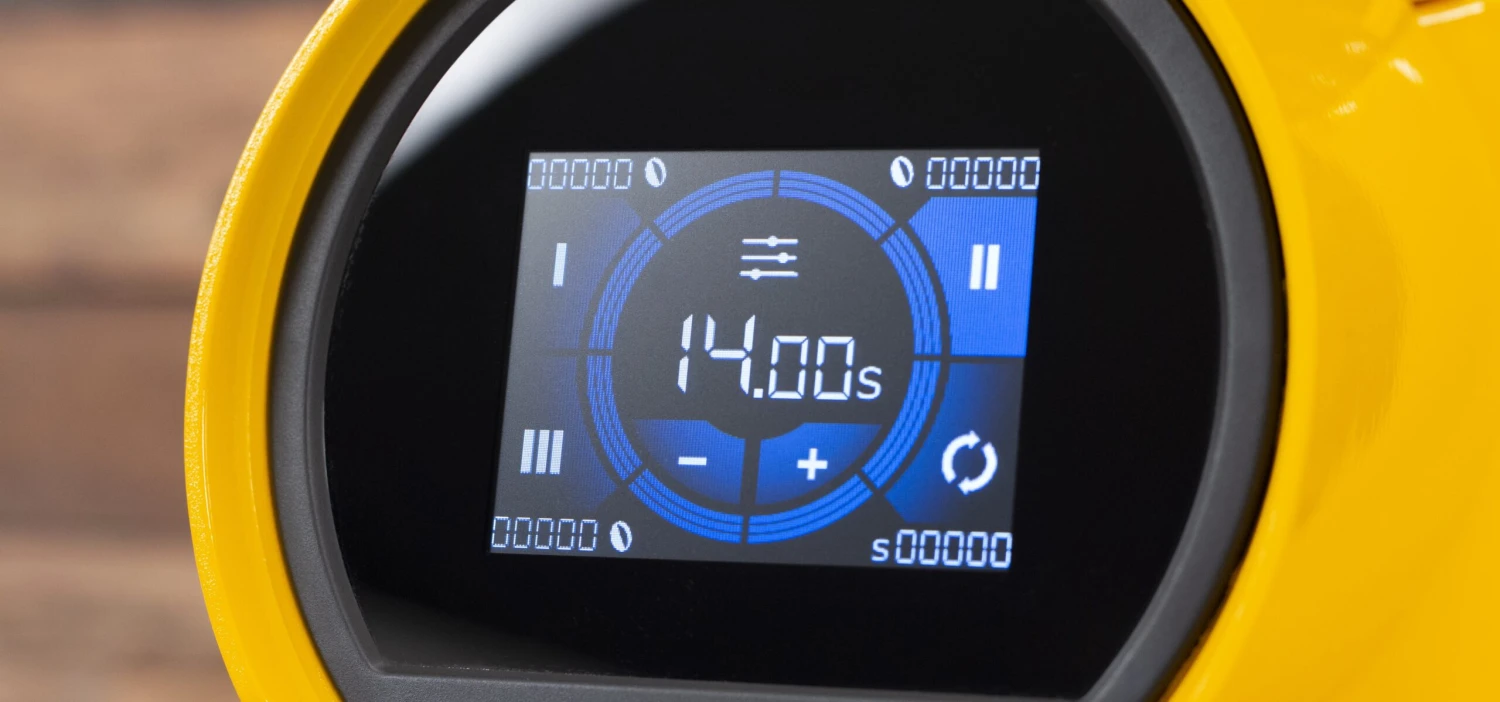 The vibrant touchscreen display makes a statement and offers 3 adjustable timed-grinding presets, as well as an option for manual grinding. Thanks to the touch controls, all adjustments and selections are easy to understand and come naturally. Inside the menus, you can tell the Helios 65 what type of burrs you have installed so that it can notify you when to change the burrs. You can select different colors for the menu as well for a personal touch.