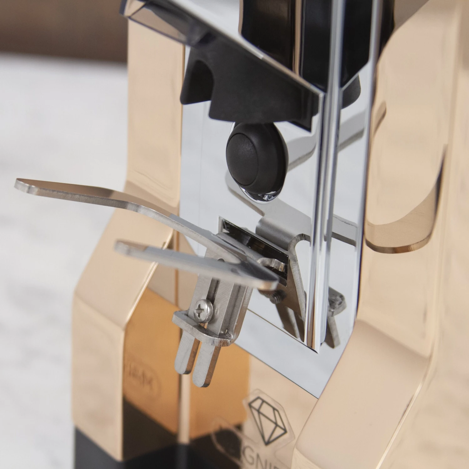 For performance, it’s equipped with 55 mm flat hardened steel burrs and a strong 1350 RPM motor with an output of 1.4 – 1.8g/s for espresso and 1.9 – 2.5g/s for brew. Eureka’s ACE system helps prevent clumping by eliminating static in ground coffee, which in turn ensures dose consistency.