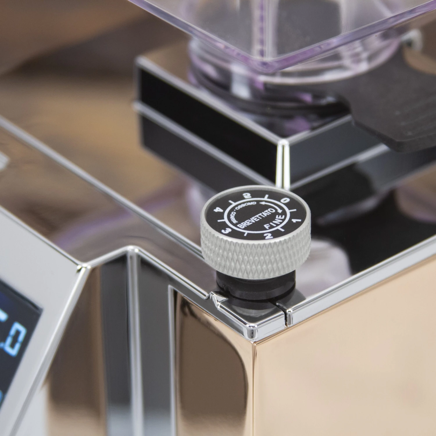 The Eureka Mignon Magnifico is an all purpose grinder with 55 mm flat hardened steel burrs that give it the highest output in Eureka’s Mignon range. Not only that, the Magnifico features specially designed “diamond inside” burrs which keep their edge for longer compared to stock burrs. The touch screen display is a stand out feature for a grinder so small, making adjustment as easy as it should be. With its larger burrs, the Mignon Magnifico can produce up to 1.8g of coffee per second for espresso, meaning it can produce a barista quality 18g double shot in as little as 10 seconds.