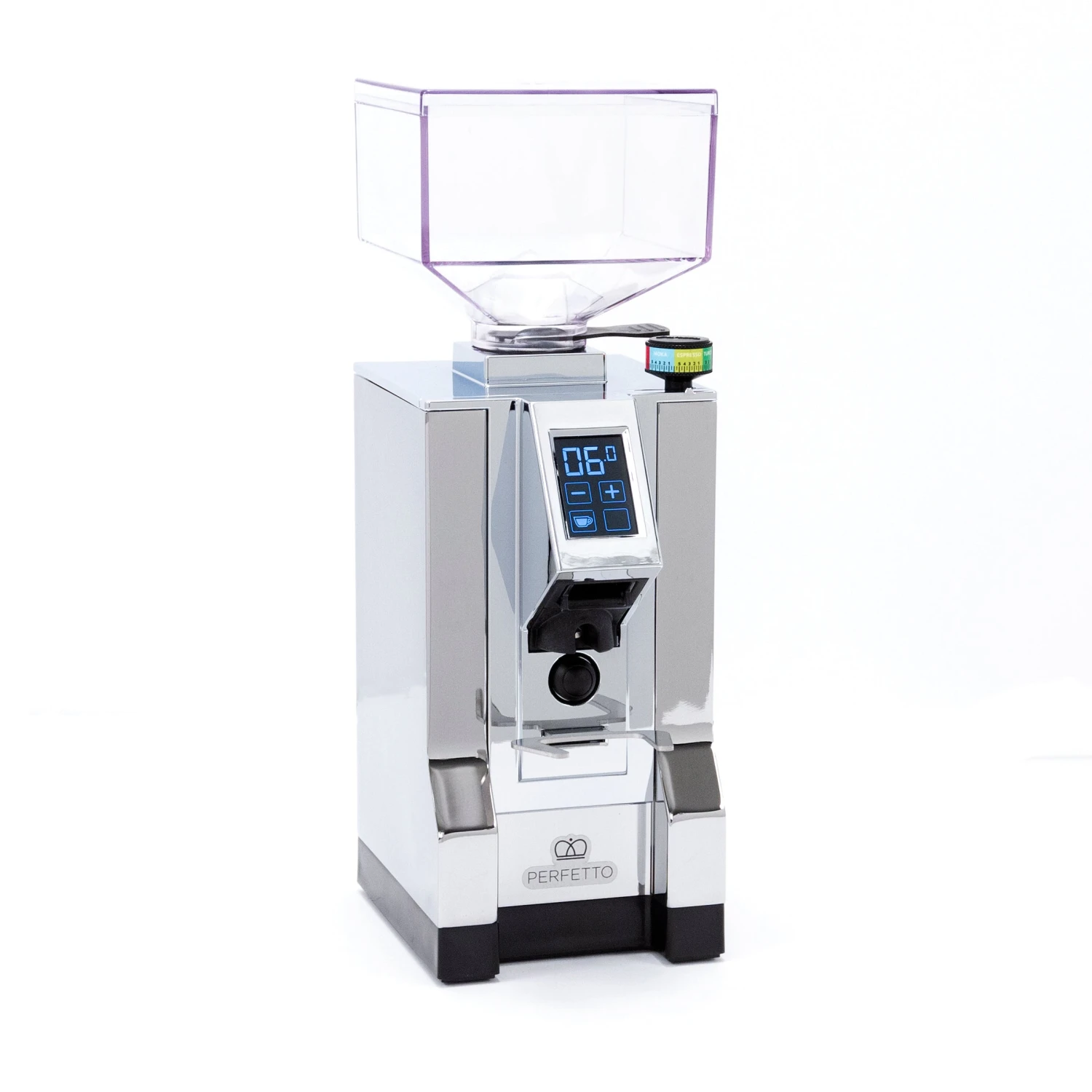 The Eureka Mignon Perfetto is an all purpose grinder with a touch screen display and Eureka’s “Easy Setting System” which makes adjustment as easy as it should be. When it comes down to it, that’s exactly what the Mignon Perfetto is about—it makes grinding fresh coffee as easy as it should be for the home barista.