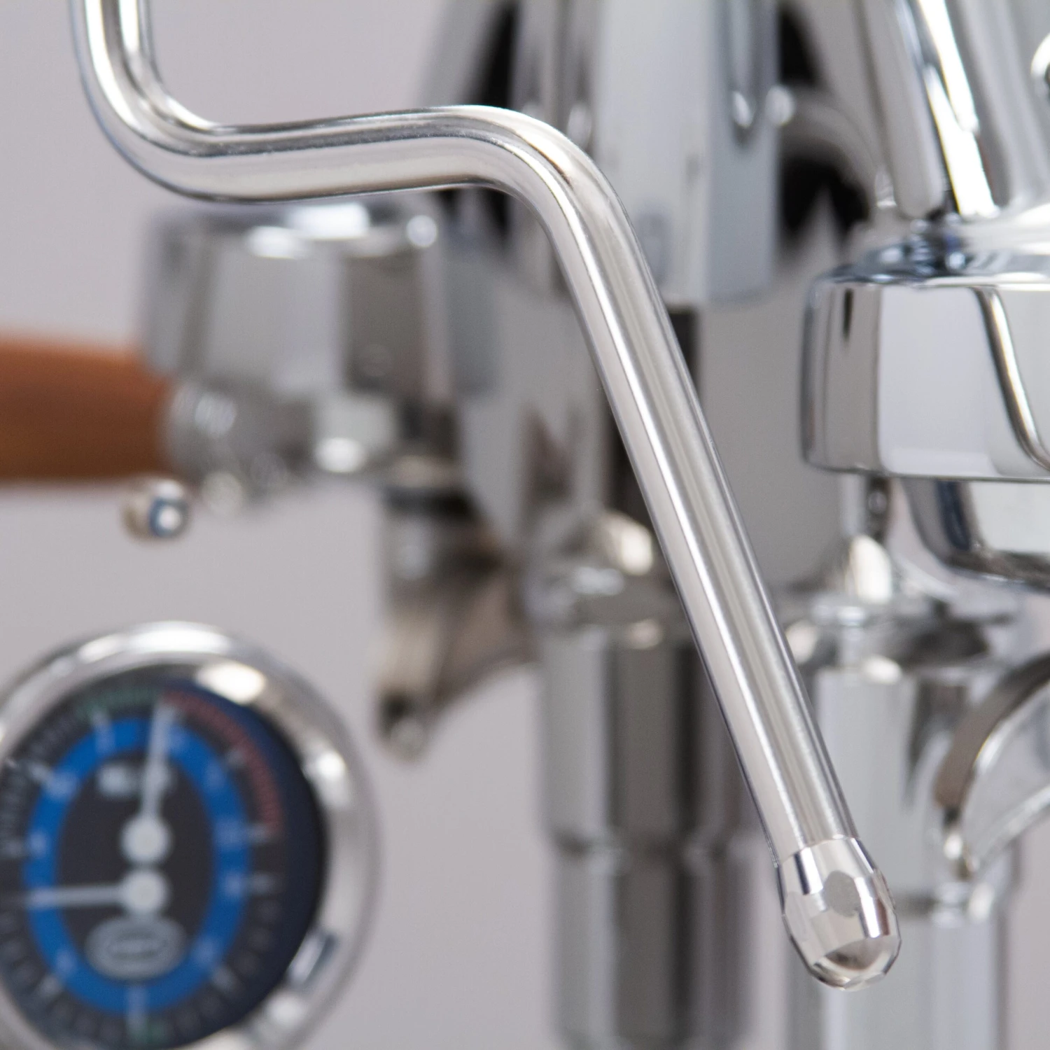 The Quick Mill Vetrano Design with Wood Accents features an insulated 0.75 L stainless steel brew boiler and insulated 1.4 L steam boiler coupled with an LED PID temperature controller. Along with the ever-iconic E61 brew group, you can expect rocksteady temperature stability shot to shot. Plus, with the dual boilers, you can brew and steam at the same time. Brew and steam pressure are monitored by the colorful dual manometer. With the commercial style steam wand, you can froth and texture milk exactly how you like and prepare lattes and cappuccinos just like you would get at a local cafe.