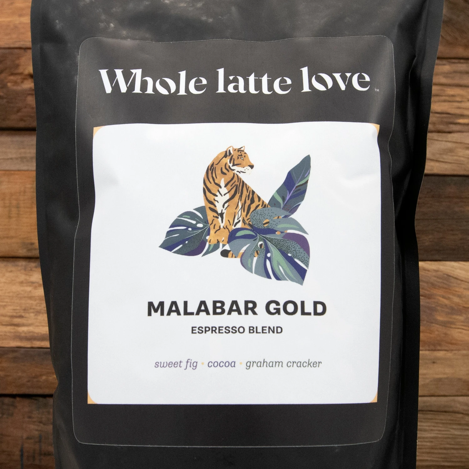 Malabar Gold™ is a premium European espresso roasted in the “light” Northern Italian fashion; mellow and low in acid. The crema is a deep reddish brown, fantastically rich, plentiful and persistent; lasting more than 20 minutes. It is smooth, rich and syrup like. When a shot of Malabar Gold™ is pulled into a shot glass it quivers like Jell-O.
